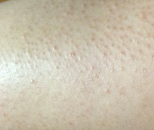 3.皮肤干燥,有毛囊角化性小丘疹,密集成片,触之粗糙似锉刀状,呈正常肤色或淡红色.
