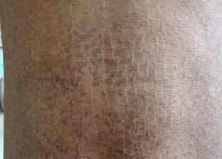 4:严重鱼鳞病患者有皮肤样鳞屑,3-8毫米厚,严重程度不同,长菱形或多角形,浅棕色或深褐色,像鱼鳞一样,可伴有四肢躯干和腰部伸展到覆盖大部分或全身.